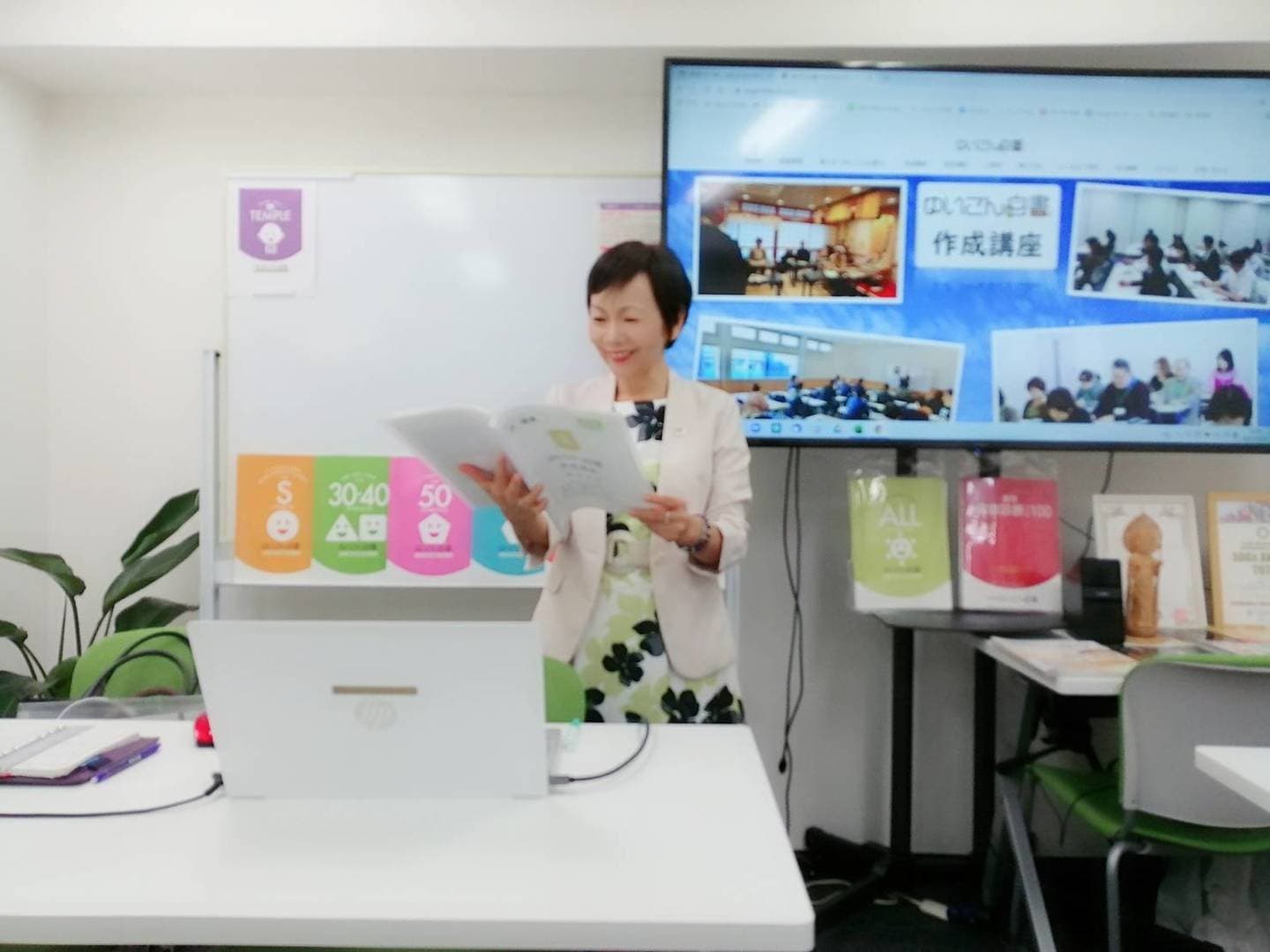 これまで『ゆいごん白書®』作成講座受講者は延べ3000名以上、認定講師は現在35都道府県、ハワイまで全国に200名(2025年2月現在)、商工会議所、教員委員会、ロータリクラブ、市民大学、旅行会社、保険会社等で「終活」「円満人生」等に関する講演活動も行っている。