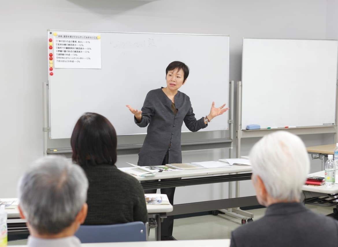 認定講師は、専用テキストを見ながら各『ゆいごん白書®』に掲載の全項目(ALL『ゆいごん白書®』は60項目、お寺版『ゆいごん白書®』は70項目、社長版『ゆいごん白書®』は100項目)すべての最新事情や役立つ情報を1項目ずつ説明しながら、受講者が最後まで仕上げられるようお手伝いをいたします。受講者からは「こんな役立つ情報が知りたかった」「講座内でほぼ完成しました。参加してよかった」とご好評をいただいており、年間400人以上が受講されています。