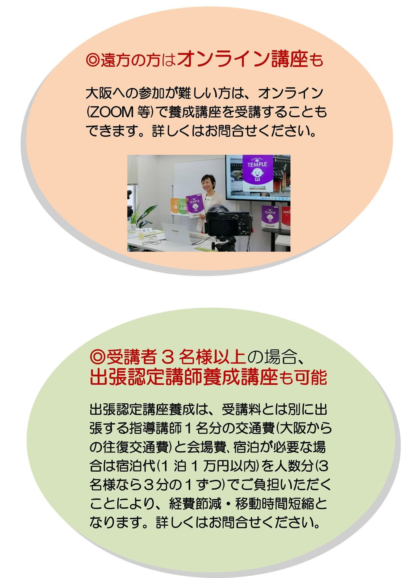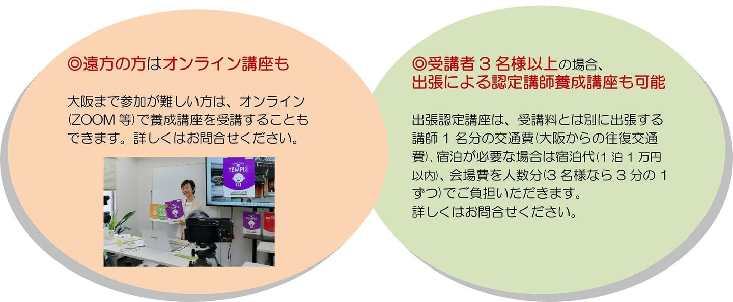 | ●ススケジュール/お寺版養成講座7時間+ALL7時間(計2日間)+試験約4時間(別日に個別対応/筆記、実技験) |
