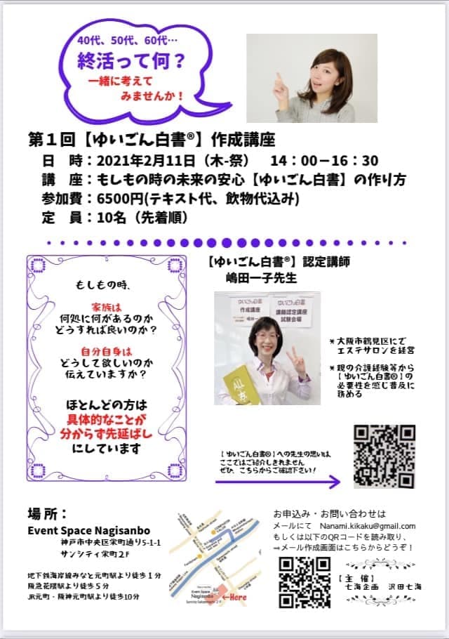 【神戸】『ゆいごん白書®』作成講座、決定!