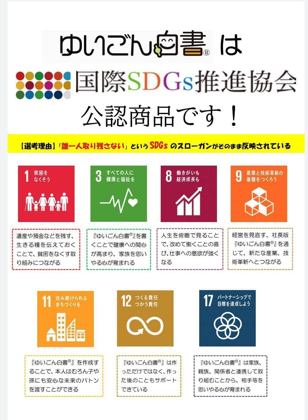 ゆいごん白書®️が「一般社団法人 国際SDGs推進協会」の公認商品に選ばれました!