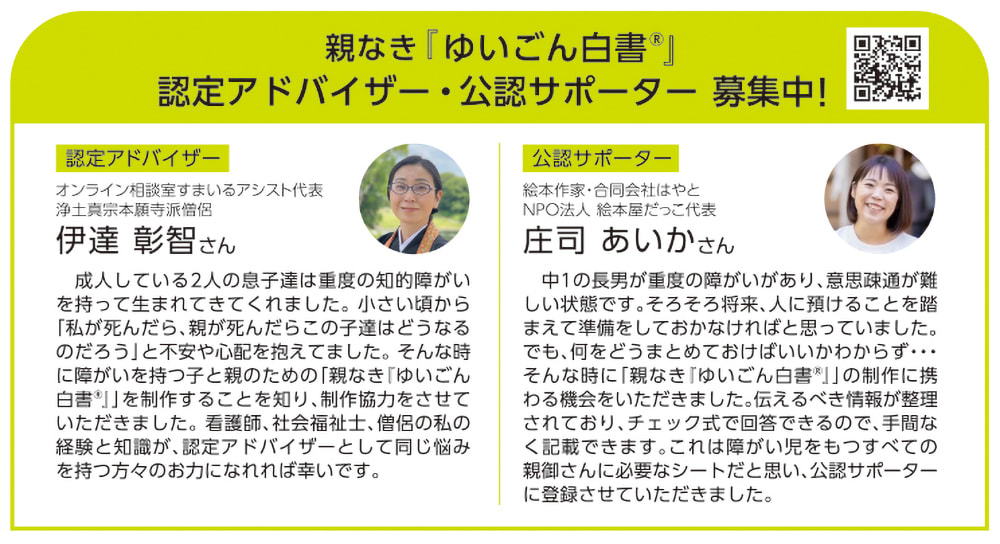 親なき障がい者の未来をMAMORU『ゆいごん白書®』