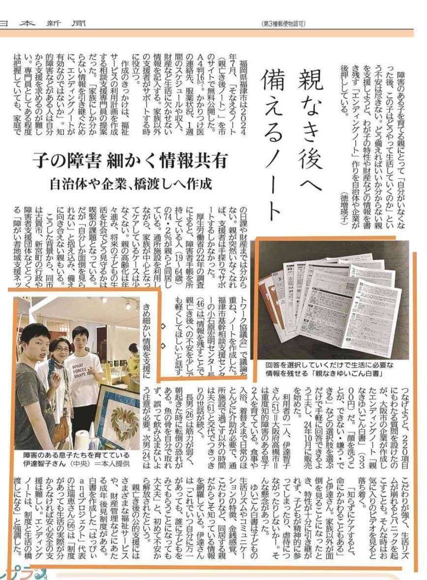 1月17日、毎日新聞大阪版に1月11日に誕生した、お寺版『ゆいごん白書®︎』が紹介されました!
