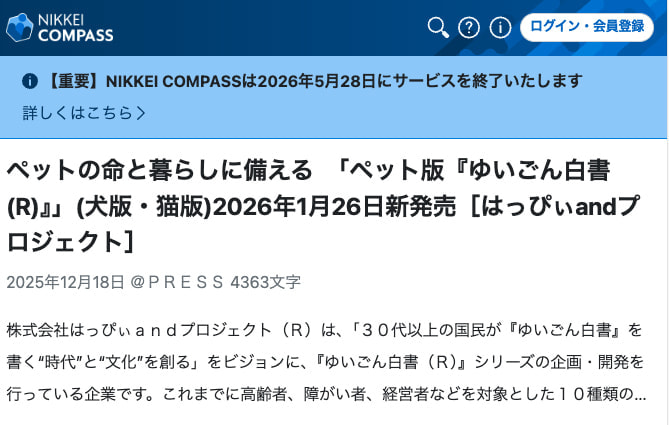 2026年12月18日、NIKKEI COMPASSに掲載していただきました。